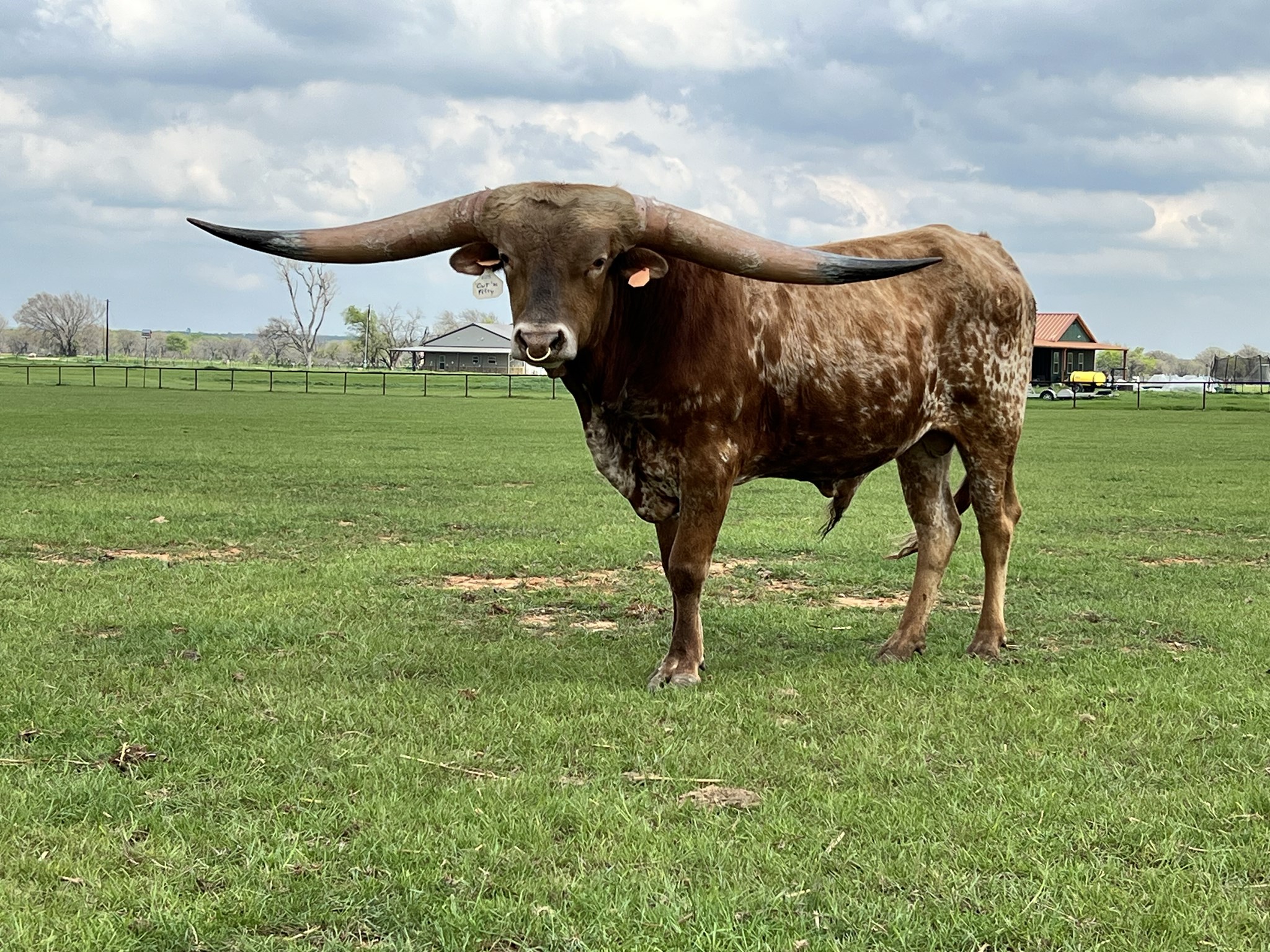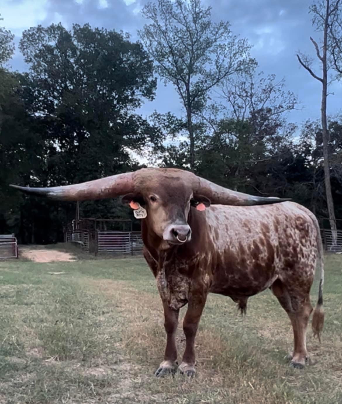 EJS Cut'N Fifty is a son out of the great Fifty-Fifty BCB who goes back to Bandera Chex, Peacemaker 44, Poco Lady, Ringing BCB and Working Man Chex. His dam is Cut'N Jest who is out of Cut'N Dried who goes back to Cowboy Tuff Chex, Dragon Pearl, Jest Ironic, Drag Iron and Jester. Fifty measured 84.625" ttt on his 3rd birthday, in December at only 34 months old he measured 89.25" ttt. He has the horn, color, genetics, and overall an amazing disposition that he passes off to his offspring.