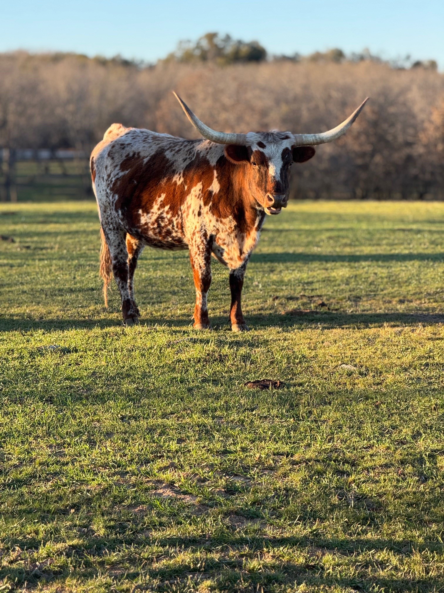 She's a very sweet cow! She was haltered so she has a very sweet disposition. LOVES to be hand fed treats and will let you pet her.