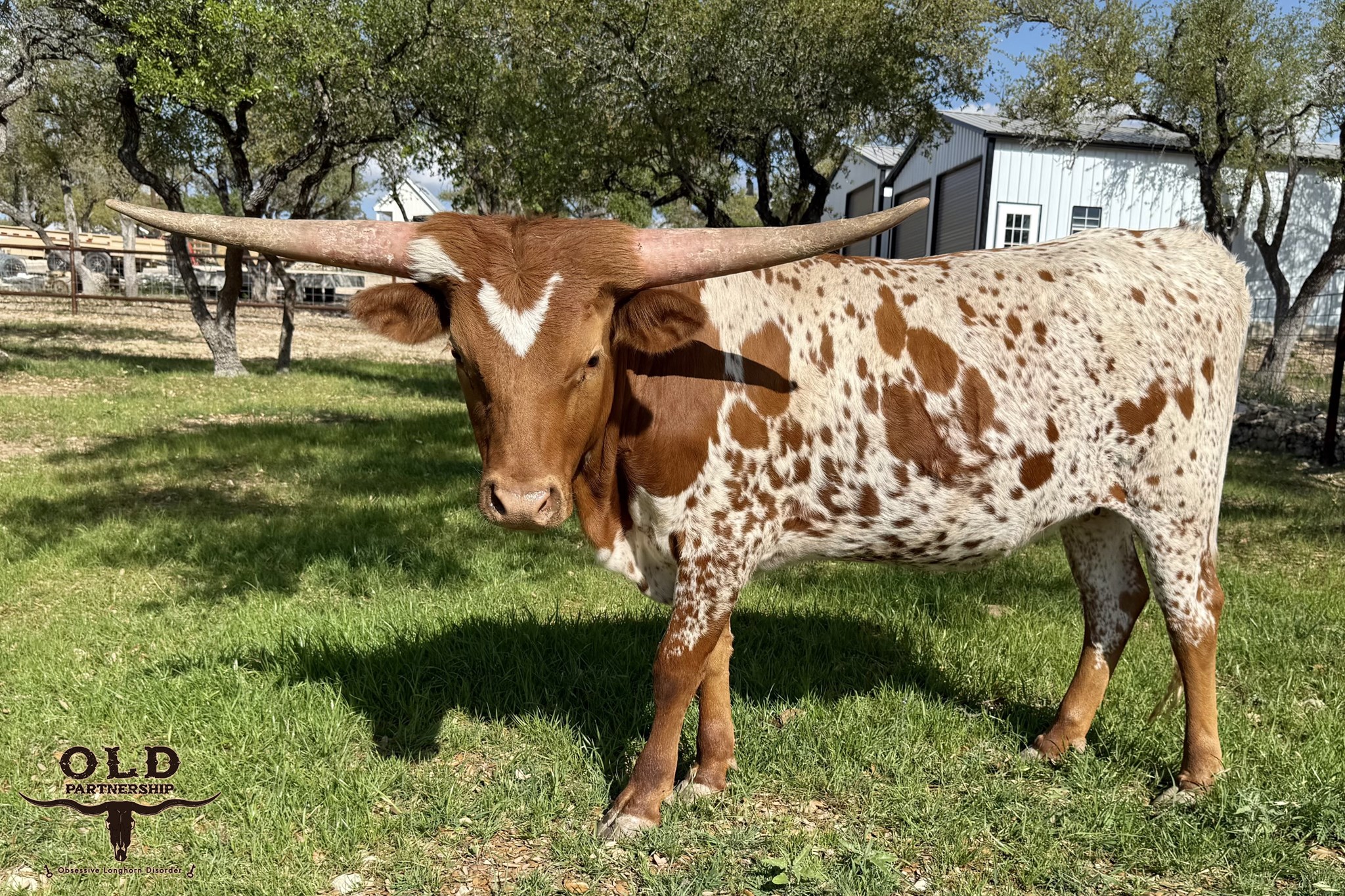 A pedigree stacked for greatness, gorgeous daughter of REBEL HR who needs no introduction! This painted heifer is beautifully marked, built with PERFECT conformation, horns are going back, and has the MATERNAL strength to build a program with! Her TWISTY horns almost 95"TTT Dam WF PAINTED LILY 333 is one of the most SOUGHT AFTER amazing and special daughters of TEMPTER, and one of the most beautiful in the industry. We are so very excited to watch her grow and have big plans for her with HR SLAM'S ROSE & FIELD OF PEARLS in her pedigree.