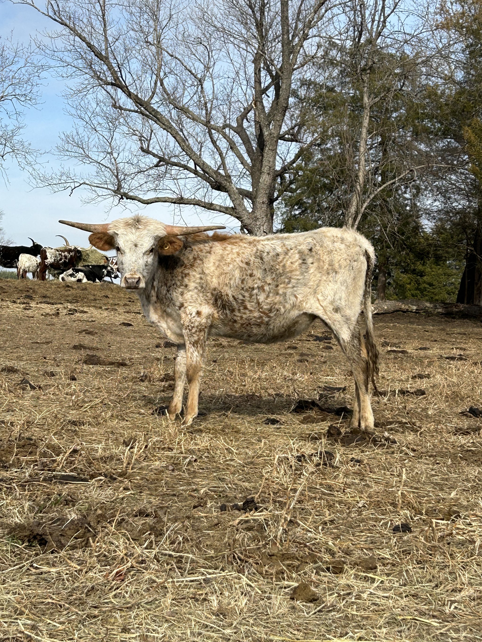 We have been waiting to do this breeding for a while now and here she is! She looks just like her momma. Her horns are starting to cut back with a nice twist to them. I definitely think she will have the nicer horn set out of her two half-sisters.
